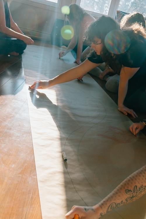 Dreamwork, drawing, and movement help us to uncover patterns we didn't know we had, in an indirect and explorative way, allowing us to move into deep discussion or silence, as needed.